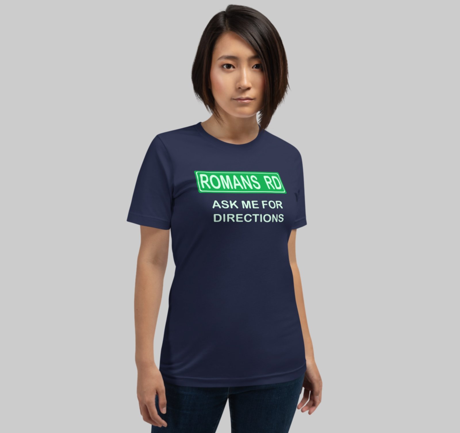 Authentic Christian Apparel at an affordable cost. Wear this Christian unisex short sleeve t-shirt to help encourage discussions of the Romans Road to Salvation. Take the name of Jesus with you WEAR-ever you go!